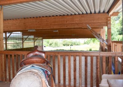 Ergänzt wird die Anlage mit der lichtdurchfluteten, offenen Reithalle (20x40m) mit Ebbe-Flut-Boden (absolut staubfrei), sowie einem RoundPen mit 18m Durchmesser.