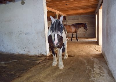 Unsere Ruheräume für die Pferde sind in den alten Stallungen untergebracht. Die Räumlichkeiten wurden so belassen, so dass die natürlichen Wände die Abgrenzungen zu den einzelnen Ruheräumen bilden. Somit können Pferde unterschiedlichen Ranges die Ruheräume nutzen, was auch sehr gut angenommen wird.